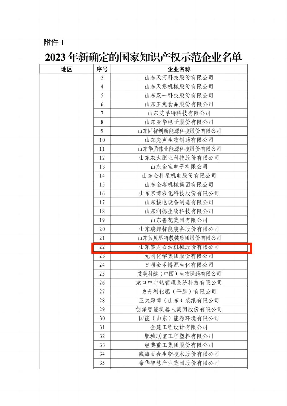 2023年11月29日,國(guó)家知識(shí)產(chǎn)權(quán)局公布了2023年新一批及通過(guò)復(fù)核的國(guó)家知識(shí)產(chǎn)權(quán)示范企業(yè)和優(yōu)勢(shì)企業(yè)名單,山東墨龍石油機(jī)械股份有限公司(以下簡(jiǎn)稱“山東墨龍”)成功入選,成為壽光市首家國(guó)家知識(shí)產(chǎn)權(quán)示范企業(yè)。